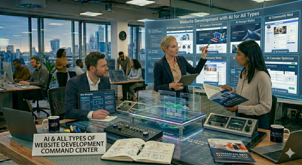 Here is a high-level conceptual image of our AI-Powered Website Development Command Center, illustrating how we utilize cutting-edge artificial intelligence to build, manage, and optimize all types of web platforms.